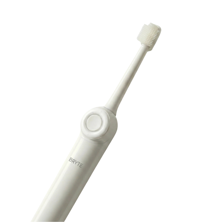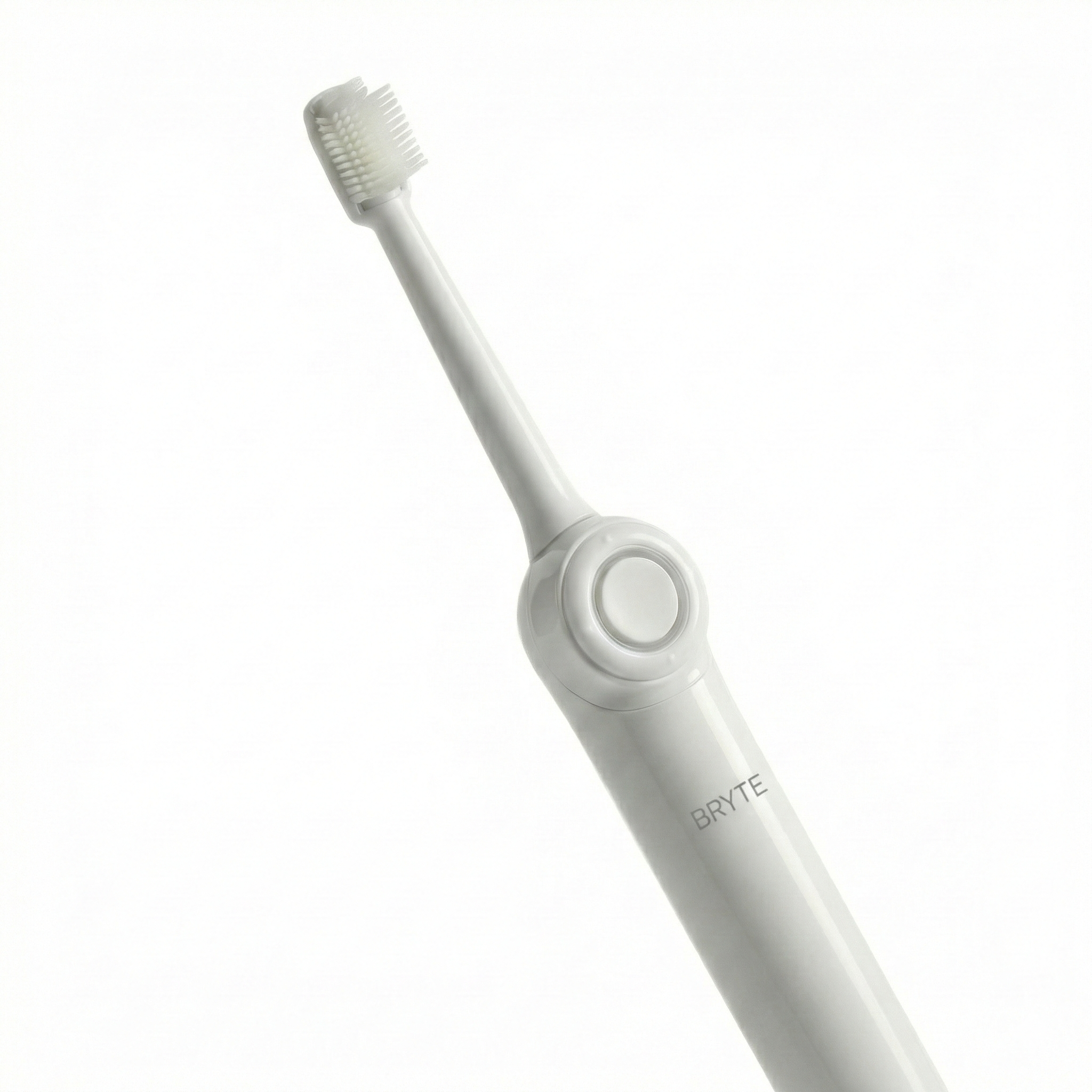 Die BRYTE Zahnbürste nutzt einen rotierenden, bidirektionalen Bürstenkopf, der alle Seiten jedes Zahns gleichzeitig reinigt. Im Gegensatz zu herkömmlichen vibrierenden Bürsten erreicht die kreisförmige Bewegung den Zahnfleischrand und die Zahnzwischenräume besser und entfernt Ablagerungen dort, wo normales Putzen nicht hinkommt.
